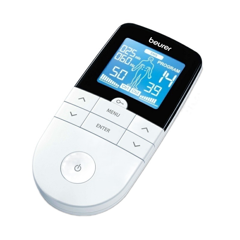 دستگاه ماساژ EM 49 از برند آلمانی بیورر دستگاهی همه کاره در حیطه ی دستگاه های ماساژور برقی به حساب می آید و کاربردهای مختلفی از جمله در مصارف خانگی، حرفه ای (مناسب ورزشکاران) و مدیکال دارد. این دستگاه مجهز به سه تکنولوژی EMS - TENS - ماساژ می باشد. تکنولوژی TENS در تسکین درد کاربرد گسترده ای دارد، تکنولوژی EMS جهت تحریک و بازسازی عضلات به کار برده می شود و عملکرد سوم این دستگاه یعنی ماساژ جهت ریلکس و آرام کردن عضلات می باشد. دستگاه beurer EM 49 مجهز به LCD با Backlight است و به شما با نمایش محل قرار دادن الکترودها در قرار دادن صحیح الکترودها در برنامه های مختلف کمک می کند. این دستگاه دارای 64 برنامه ی از پیش بارگذاری شده و 6 برنامه ی قابل شخصی سازی می باشد.