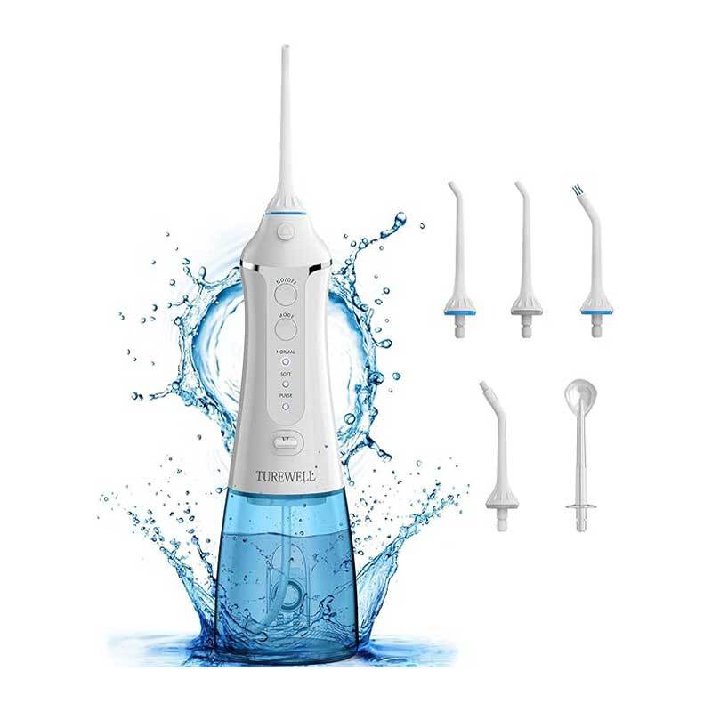 آبیاری دهانی TUREWELL همراه با 2 نازل فشار قوی معمولی و 2 نازل مخصوص (1 نازل لکه‌بردار دندان و 1 نازل ارتودنسی) ارائه می‌شود. نازل‌های چرخشی 360 درجه به شما اجازه می‌دهند به راحتی قسمت‌هایی را که دسترسی به آن‌ها دشوار است تمیز کنید.