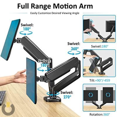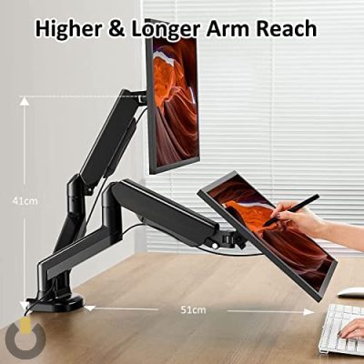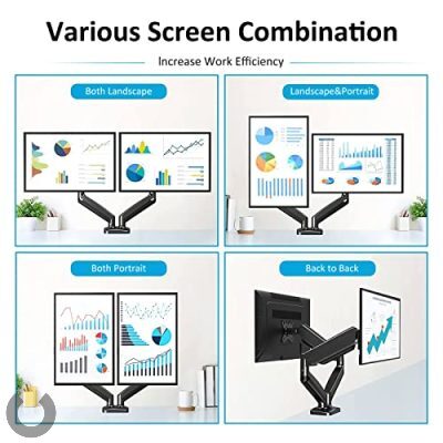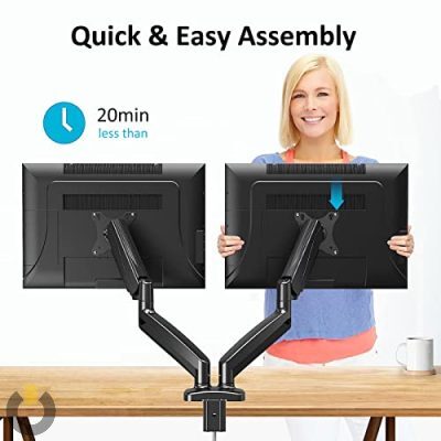 پایه مانیتور دوگانه، پایه مانیتور دوتایی فنر گازی کاملاً قابل تنظیم، بازوی دیواری مانیتور برای