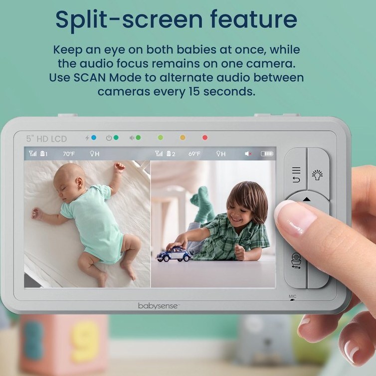 هر دو کودک را به طور همزمان روی یک صفحه نمایش زیر نظر داشته باشید، در حالی که فوکوس صدا در هر بار روی یک دوربین باقی می ماند و گوش دادن واضح و بدون وقفه را تضمین می کند. بهعلاوه، با حالت اسکن، هر 15 ثانیه یکبار صدا را بین دوربینها جایگزین کنید، و این اطمینان را میدهد که هرگز لحظهای از هر دو دوربین را از دست نمیدهید. تصویر 720 HD روی صفحه نمایش LCD بزرگ 5 اینچی، مشاهده ای شفاف و شفاف را فراهم می کند. از راحتی کنترل از راه دور عالی با پان و شیب از راه دور و زوم تا x4، در محدوده 1000 فوت (٣٠٠ متر در فضای باز) لذت ببرید. .از صدای دو طرفه، صدای سفید نویز یا صداهای لالایی برنامه ریزی شده برای آرام کردن کودک خود از راه دور استفاده کنید. به لطف دید در شب مادون قرمز این مانیتور دوربین دار قابل حمل رده بالا، 24 ساعته و 7 روز هفته کودک خود را تماشا کنید. در مانیتور از یک باتری جدید 4000 میلی آمپر ساعتی و حالت صرفه جویی در انرژی برای فعال سازی خودکار مانیتور بر اساس صدای کودک شما استفاده شده است.برای اطمینان از محیط خواب بهینه در اتاق کودک، از نور شب با شدت سازگار داخلی لذت ببرید.هیچ چیز استرس زاتر از این نیست که ندانید فرزند کوچکتان چه می کند. به همین دلیل است که مانیتور کودک ما دارای 2 دوربین است که نیازی به وای فای ندارد (بدون خطر هک) و به شما امکان می دهد شب بهتر بخوابید.دارای لالایی و مکالمه دو طرفه است. دید در شب دارد. سنسور دمای اتاق دارد. دوربین چرخشی ٣۶٠ درجه می باشد. که توسط دکمه های روی مانیتور به چپ و راست و بالا و پایین می چرخد.سفارش ساخت کشور انگلیس می باشد.