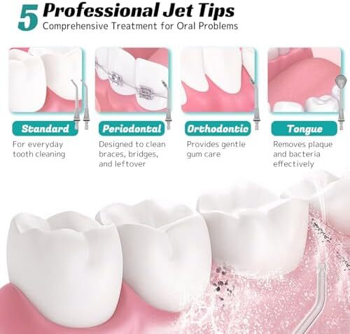 تمیز کردن عمیق و بهبود سلامت لثه: دستگاه نخ دندان FlossJet با فشار آب قابل تنظیم از 20 تا 115 PSI، لکهها را به طور موثر برای تمیز کردن کامل از بین میبرد. این نخ دندانهای بیسیم به ویژه برای افرادی که ارتودنسی دارند، موثر است، زیرا با دقت به نواحی دشوار میرسد و به از بین بردن موثر پلاک و ذرات غذا کمک میکند و در عین حال نفس تازه و لبخندی درخشان را به ارمغان میآورد.
